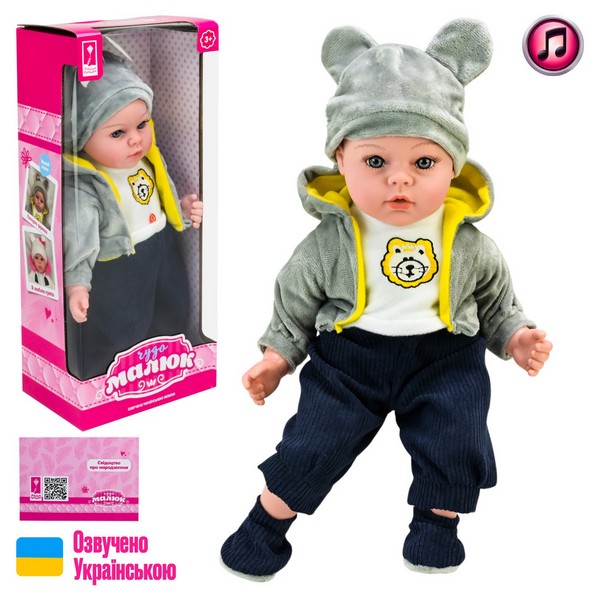 Пупс M 5889 I UA (18шт) 33см, муз(укр), 5 пісень, соска, 2 види, в кор-ці, 23,5-37-10,5см (шт.)