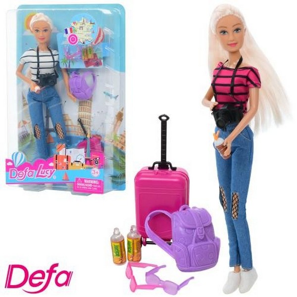 Лялька DEFA 8389 (48шт) 30см, валіза, рюкзак, фотоапарат, 2 кольори, в слюді, 20,5-32-6см (шт.)