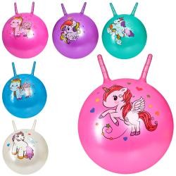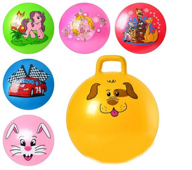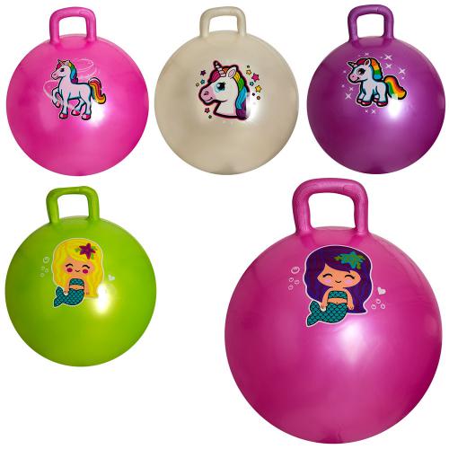 М'яч для фітнесу MS 0486 (25шт) з ручкою, 5 видів, 55см, 600г, в кульку, 19-16-4см (шт.)