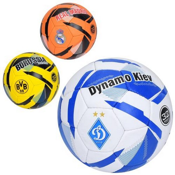 М'яч футбольний 2500-297 (30шт) розмір 5, ПУ1, ручна робота, 32 панелі, 410-430г, 3 види (клуби), в (шт.)