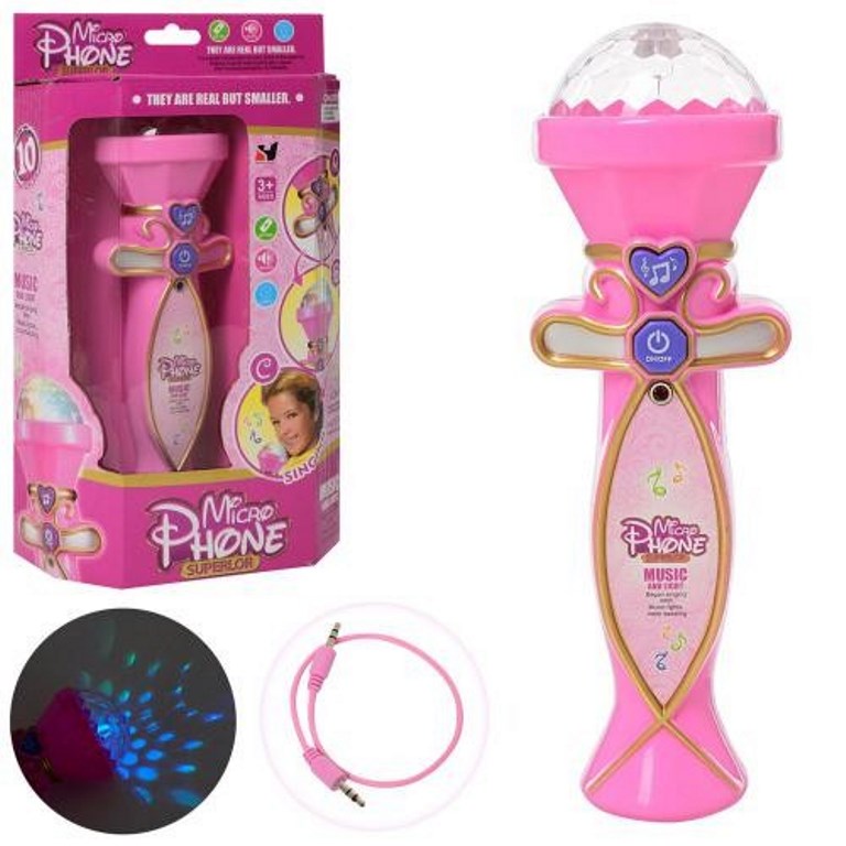Мікрофон 777 (80шт) 20,5см, музика, 2 види, на бат-ці, в кор-ці, 8-28-6см (шт.)