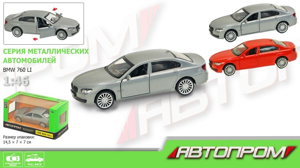 Машина метал 4317 (96шт/2) "АВТОПРОМ",BMW 760LI, 2 кольори, відкр..дверей,в кор. 14,5*7*7см (шт.)