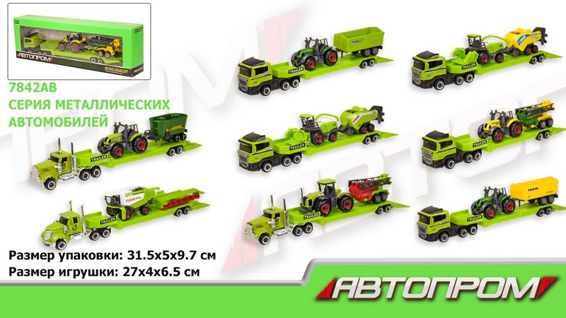 Трейлер метал. АВТОПРОМ арт. 7842AB (72шт/2),1:50,8 видів +трактор короб.31,5*10*5см (шт.)