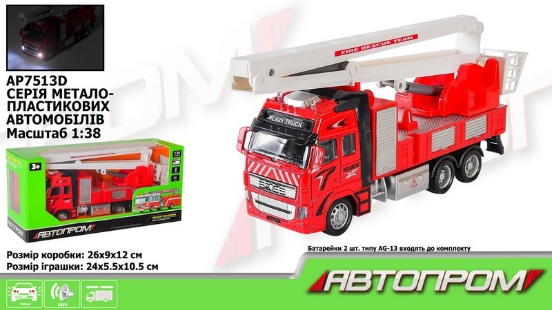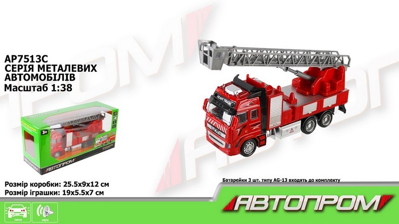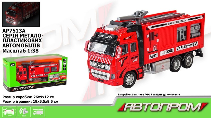 Машина мет. АВТОПРОМ арт. AP7513A (48шт/2) 1:38, пожежна охорона, батар., світ.,звук,короб.25,5 * 1 (шт.)
