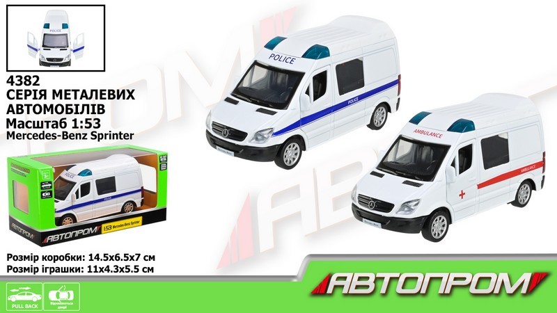 Машина мет. АВТОПРОМ арт. 4382 (96шт/2) 1:53 Mercedes-Benz Sprinter, відкр.двері,короб. 14,5 * 6,5 * (шт.)