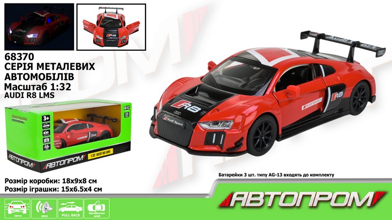 Машина мет. АВТОПРОМ арт. 68370 (48шт/2) 1:32 "AUDI R8 LMS", батар, світ., звук, відкр.двері, короб. (шт.)