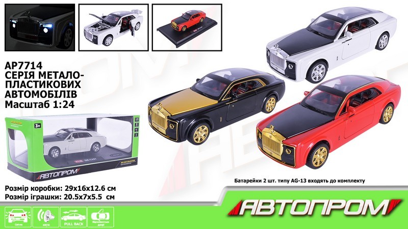 Машина мет. АВТОПРОМ арт. AP7714 (12шт) 1:24,3 кольори, батар, світ., звук, двері відкр., короб.29*1 (шт.)