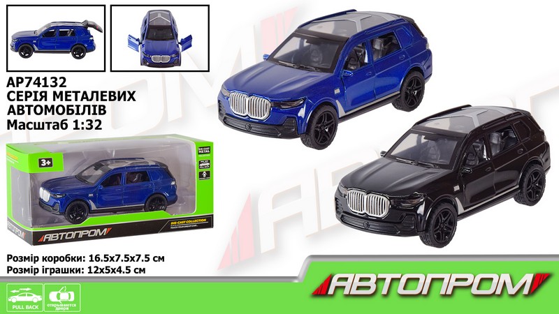 Машина мет. АВТОПРОМ арт. AP74132 (48шт) 1:32,2 кольора,відкр.двері,багажник,короб.16,5*7,5*7,5см (шт.)