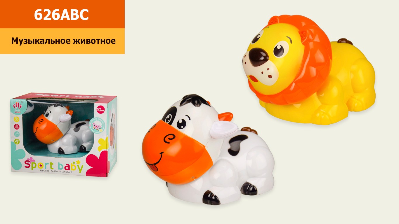 Тварина муз. корівка/лев муз. 626ABC (24шт/2)світло,звук,рух.,батар.,короб. 24*16*18 см, р-р іграшки (шт.)