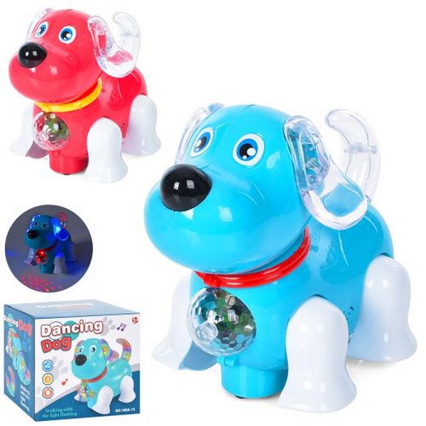 Собака MP 2191 (60шт) 17см, звук, ходить, рухомі деталі, на бат-ці,4 кольори (шт.)