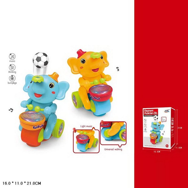 Слоник муз. арт. 664B (60шт/2) батар., 2 кольори мікс, світл., короб. 21*16*11см (шт.)
