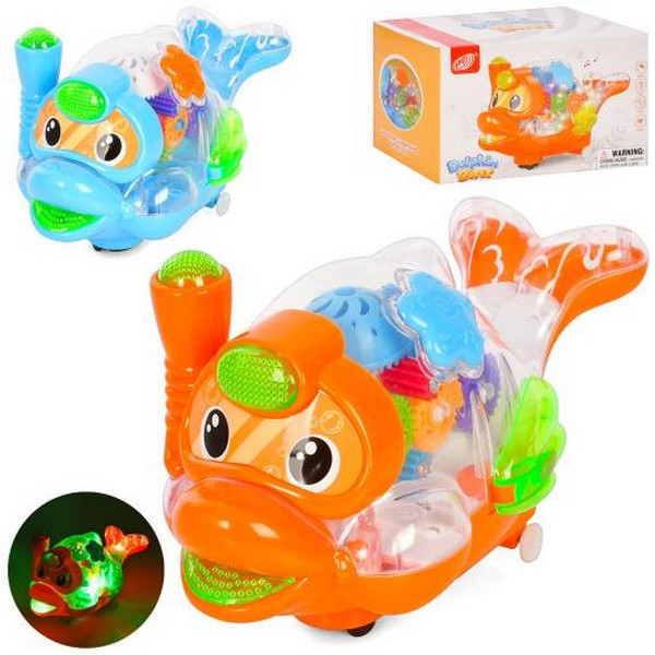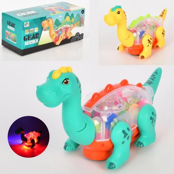 Динозавр муз. арт. QF05-3 (QF05-3-KI) (72шт/2) батар., прозорий корпус,кольорові внутрішні деталі, (шт.)