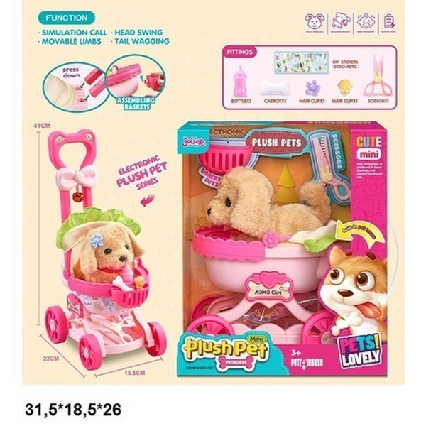Песик MC-1082 м'як.з коляскою та аксес.4кол.кор.31,5*18,5*26 /18/ (шт.)