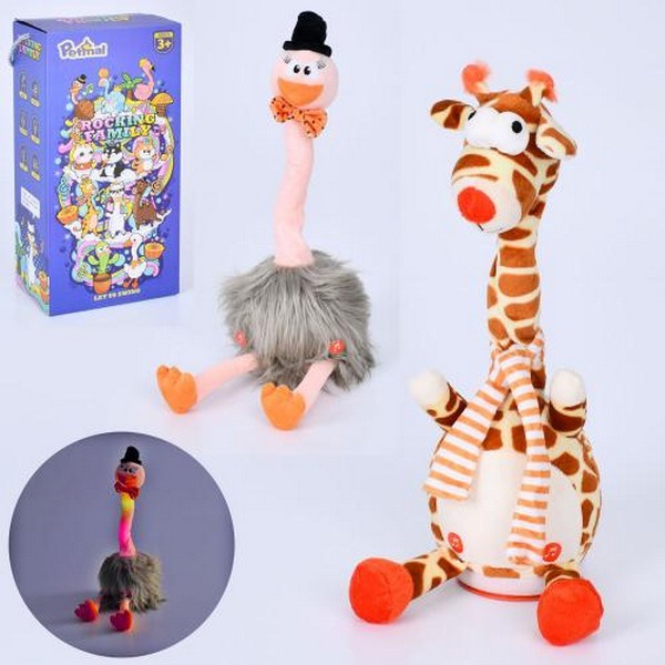 Тварина 777-105D (32шт) 35см, музика, світло, танцює, повторює, 2 види(жираф, гусак), на бат-ці, в (шт.)