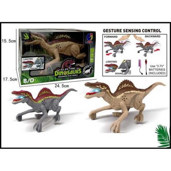 Динозавр KQX165-24 (18шт) акум, 36см,реагує на руку, звук, світло, USBзарядне, 2 кольори, в кор-ці, (шт.)