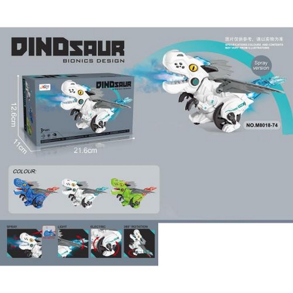 Динозавр F222 (24шт) д/к(ІЧ), 31см, музика, звук, світло, ходить, 2 кольори, на бат-ці, в кор-ці, 34 (шт.)