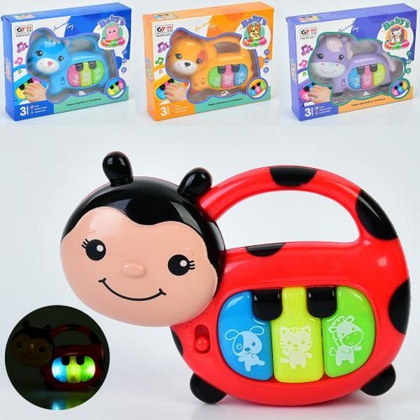 Піаніно 338-1-2-3-4 (60шт) 15см, музика, звук, світло, 2 режими, 4 види, на бат-ці, в кор-ці, 19-14- (шт.)