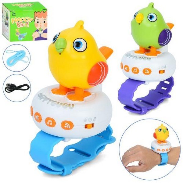 Птах 1801 (30шт) 9см, повторюшка, браслет, музика, звук, свисток, 2 кольори, акум, USBзарядне, в кор (шт.)