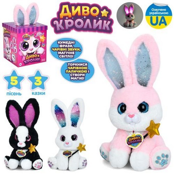 Тварина M 6144 I UA (16шт) Диво кролик (зайчик), 30см, музика-звук(укр), світло, 5 пісень, 3 казки, (шт.)