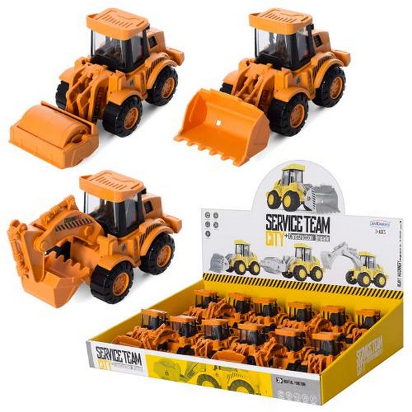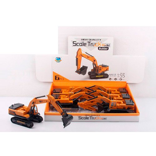Будтехнiка 600-127 (48шт) 25см, 1:55, рухливий ковш(механіч), 6шт(2 види) в дисплеї, 36-26-9см (шт.)