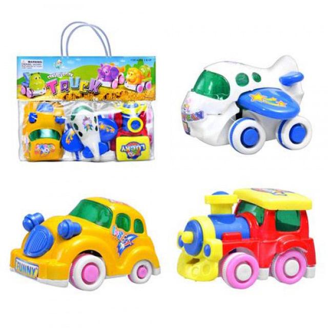 Набір машинок PVC 061 ABC (216шт) інерцій, 3шт (машина, літак, паровоз), 8см, у кульку, 19,5-14-5см (шт.)