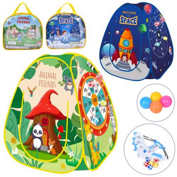 Намет MR 1261 (12шт) піраміда, 75-75-в90см, мішень, 1вхід-накидка, лук, кульки з липучками, пластм. (шт.)