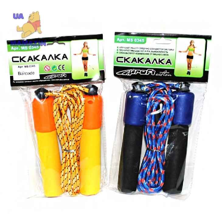 Скакалка MS 0190 (100шт) 300см,мотузка гума275см,пласт.ручки 12,5см,кул, 13,5-22см (шт.)