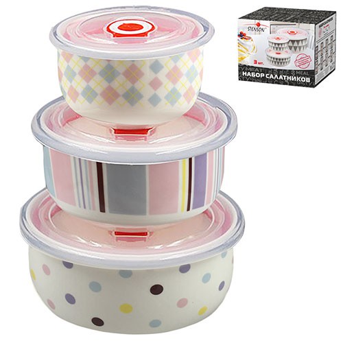 Разместить в 1 или 2 колонкиСалатники з кришками 3пр/наб 300/450/1000мл MC2703 (12наб) (шт.)