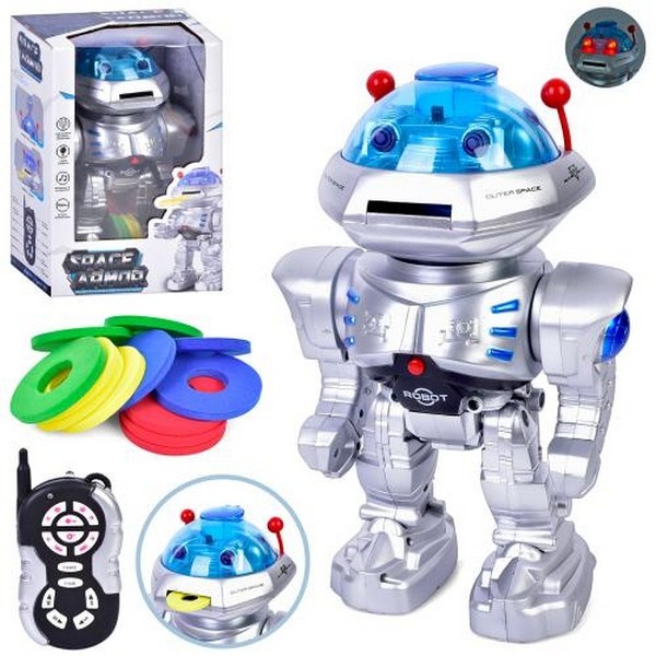 Робот 0908 (12шт) д/к, стріляє дисками, танцює, звук (англ), світло, на бат, кор, 22-32-16см (шт.)