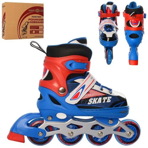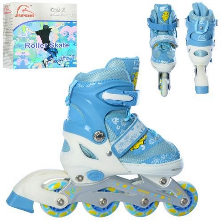 Ролики A 17119-3-S(31-34) (6шт) розсув,шнурів+бакля,алюм.рама,колесПУ64мм,світло,синій,кор,37-41-11с (шт.)