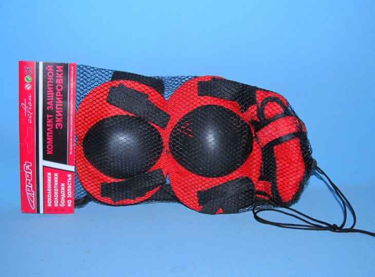 Защита MS 0338-1 (50шт) для коленей, локтей, запястий, микс цветов, в сетке, 18,8-38-9см (шт.)