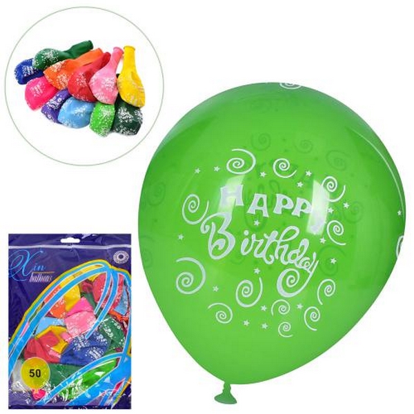 Разместить в 1 или 2 колонкиКульки надувні MK 1039-30 (50шт) 12 дюймів, принт день народження, мікс кольорів, 50 шт в пакеті (шт.)