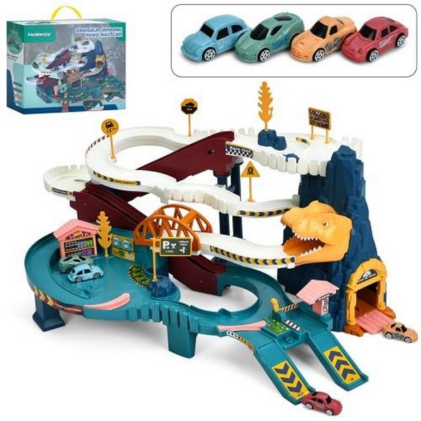 Трек 5501A (8шт) машинка 4шт, динозавр-звук (англ), світло, на бат-ку, в кор-ку, 35,5-29-16см (шт.)